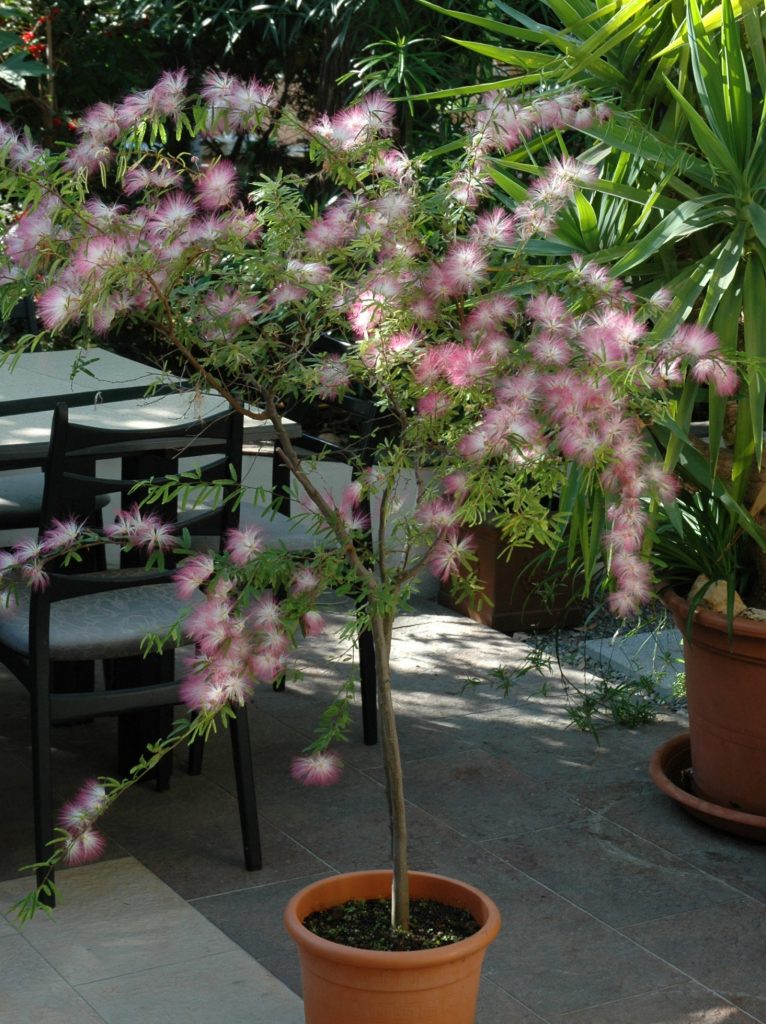 Ich möchten Ihnen anlässlich der aktuellen, sommerlichen Blütezeit eine südamerikanische Pflanzenfamilie voller Vielfalt vorstellen: Puderquastensträucher (Calliandra) tragen sehr elegante Blüten, die aus langen Staubfäden bestehen und sich zu Halbkugeln formieren. Doch ihre Eleganz macht sie nicht hochnäsig wie die sprichwörtlichen „feinen Pinsel“, ganz im Gegenteil. Die fiederblättrigen Sträucher sind robust und für Einsteiger in die Welt internationaler Kübelpflanzen bestens geeignet.