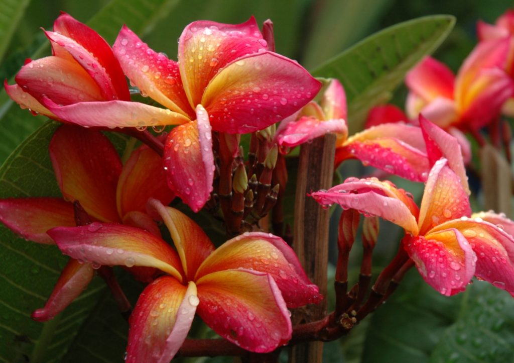 Während Plumerien, allen voran die Plumeria rubra, in ihrer Heimat vom Süden Mexikos bis zum Norden Südamerikas und auf den Inseln der Karibik zu großen Sträucher und Bäumen von bis zu 25 Meter Höhe heranwachsen können, sind sie bei uns Liebhabern exotischer Pflanzen als Topfpflanzen bekannt. Denn von ihrer Heimat aus haben Frangipani ein Siegeszug um die ganze Welt angetreten. Da sie bei entsprechenden Bedingungen sehr einfach zu kultivieren sind, sind sie nun in allen tropischen Gegenden der Welt zu finden und können aber auch mit etwas mehr an Pflege und Aufwand im Wintergarten oder Wohnzimmer faszinieren.
