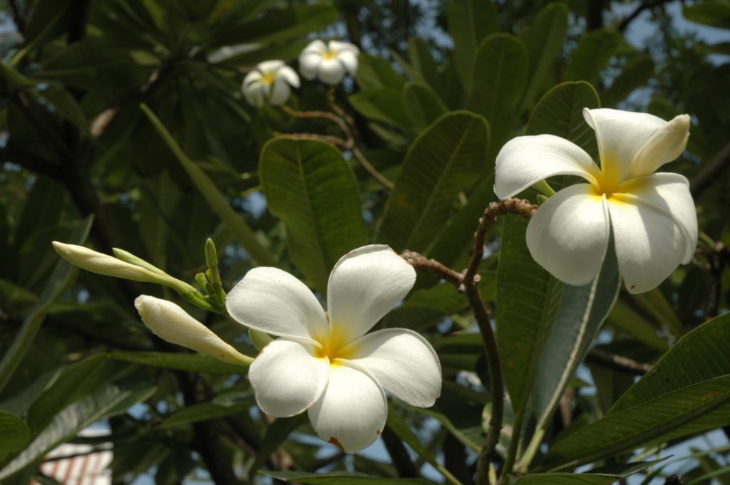 Meine Tochter hat mir heute schon stolz Fotos ihrer blühenden Frangipani per WhatsApp geschickt und mich damit zu einem kleinen Exkurs über Plumerien angeregt. Die Plumerienblüten sind vermutlich schönsten exotischen Blüten. Der Duft und die Farbvielfalt und Ebenmäßigkeit der Blüten machen Plumerien einzigartig.